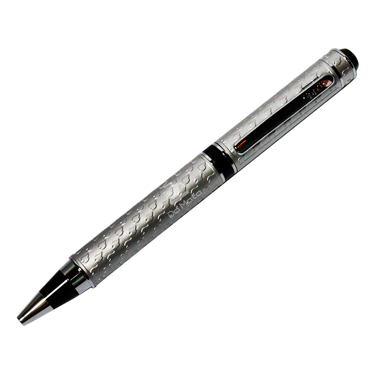 Caneta esferográfica Zippo Cayuga Satin, ponta média e recarga preta. Acabamento com logos da Zippo em relevo, disponível na cor prata.