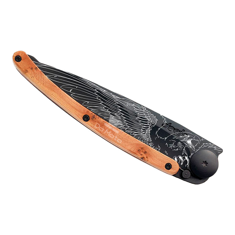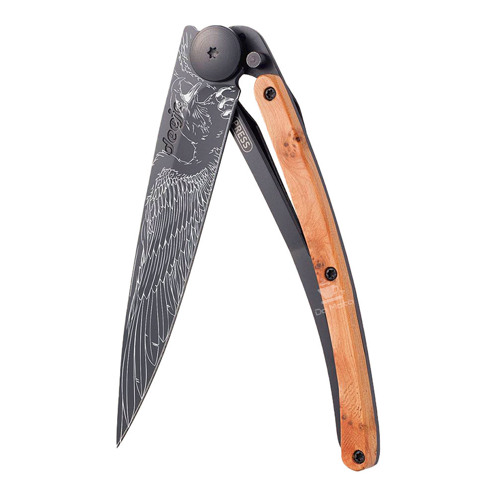 A adição do cabo de madeira, possivelmente genévrier, é um toque de maestria. Além de sua estética rústica e autenticidade, a madeira oferece uma aderência natural que transforma o manuseio do Canivete Deejo 37g Genévrier em uma experiência tátil. Se você deseja mais do que uma simples ferramenta - se busca uma combinação de estilo, engenhosidade e história, então este canivete é o companheiro perfeito para acompanhar suas aventuras diárias.