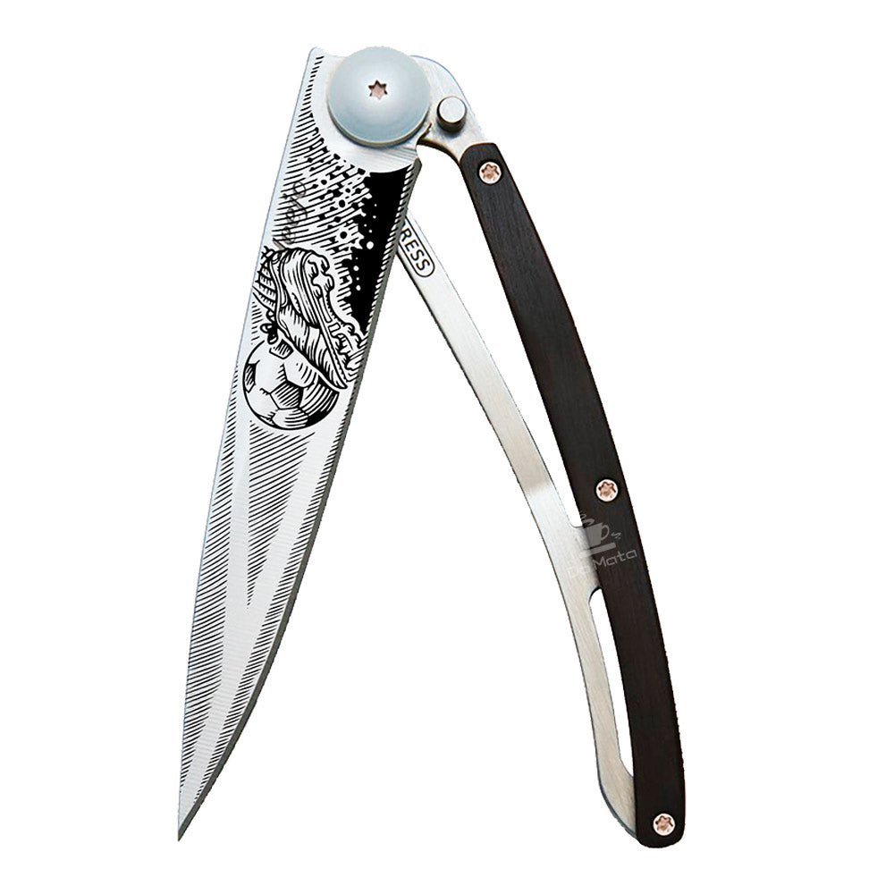 O design do Canivete Deejo 37g Goal é uma representação da elegância moderna, incorporando elementos de sofisticação em um formato leve. O mecanismo de fechamento "frame lock" oferece segurança e facilidade de uso, permitindo que você aproveite ao máximo suas funções em diversas situações.