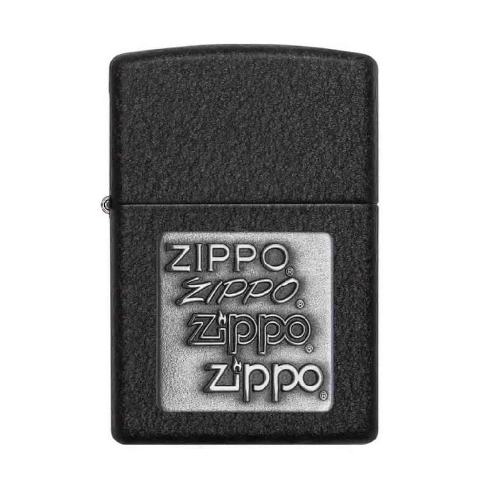 Edição logo Zippo,corpo Zippo com pintura texturizada e placa prateada com os logos Zippos do primeiro a ultima versão de logos na história do lendário isqueiro Zippo.