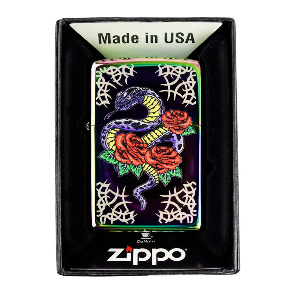 Conheça o Isqueiro Zippo Tattoo Theme Design 48395, uma verdadeira obra de arte que combina estilo, tradição e funcionalidade em um único acessório icônico. Este Zippo exibe o atemporal design de cobra e rosa, uma escolha clássica e sempre popular no universo das tatuagens, agora trazido à vida com cores vibrantes que realmente se destacam. Este não é apenas um isqueiro, mas uma peça de estilo que complementa sua personalidade, adicionando um toque de ousadia e atitude ao seu cotidiano. Feito para aqueles que apreciam a beleza em detalhes, o Zippo Tattoo Theme Design é mais do que um simples acessório; é uma declaração de quem você é e do que você representa. Se você busca um isqueiro que seja funcional e, ao mesmo tempo, um símbolo de estilo, esta é a escolha perfeita. Qual outro isqueiro oferece tanta personalidade e tradição em uma única peça?
